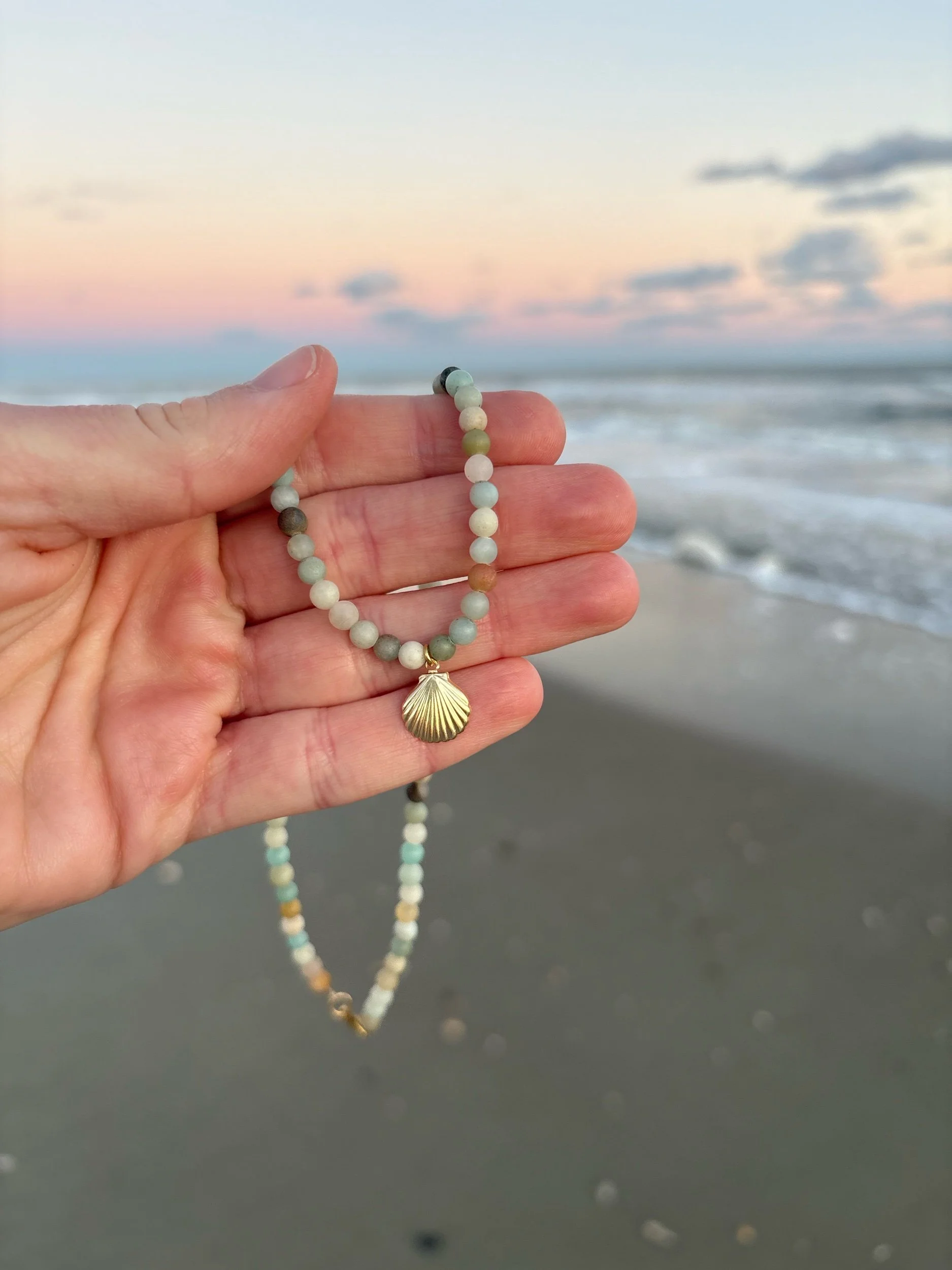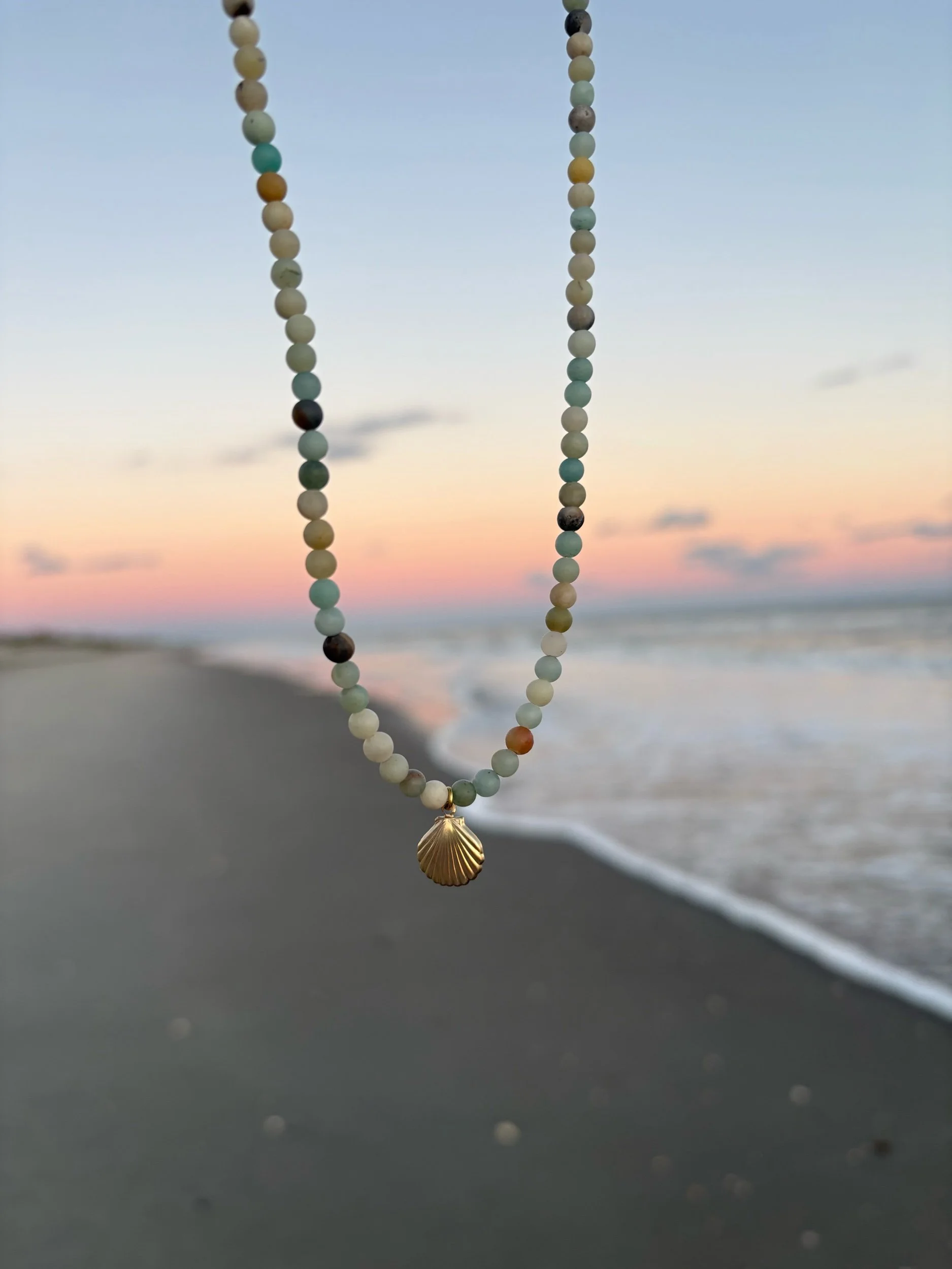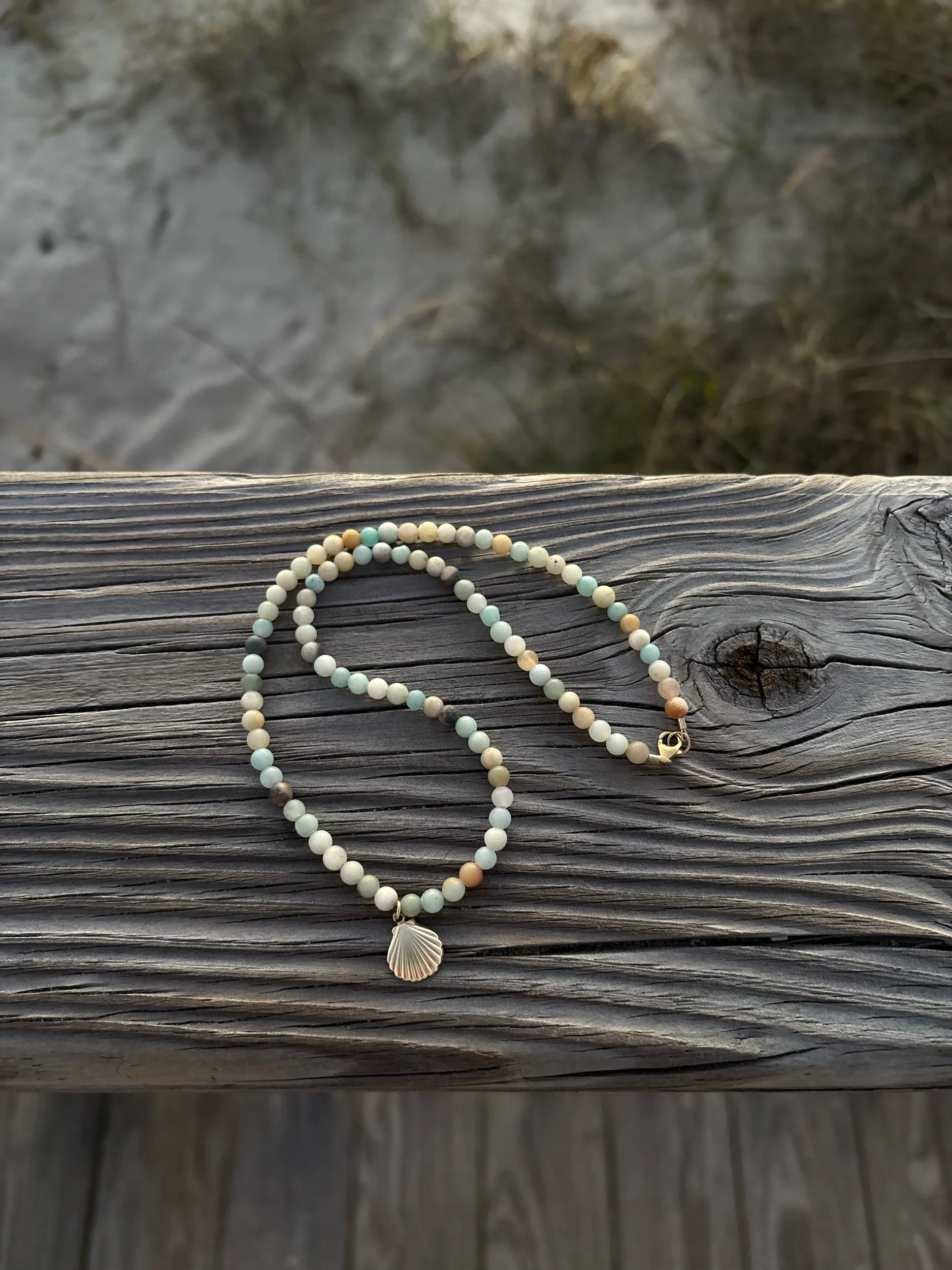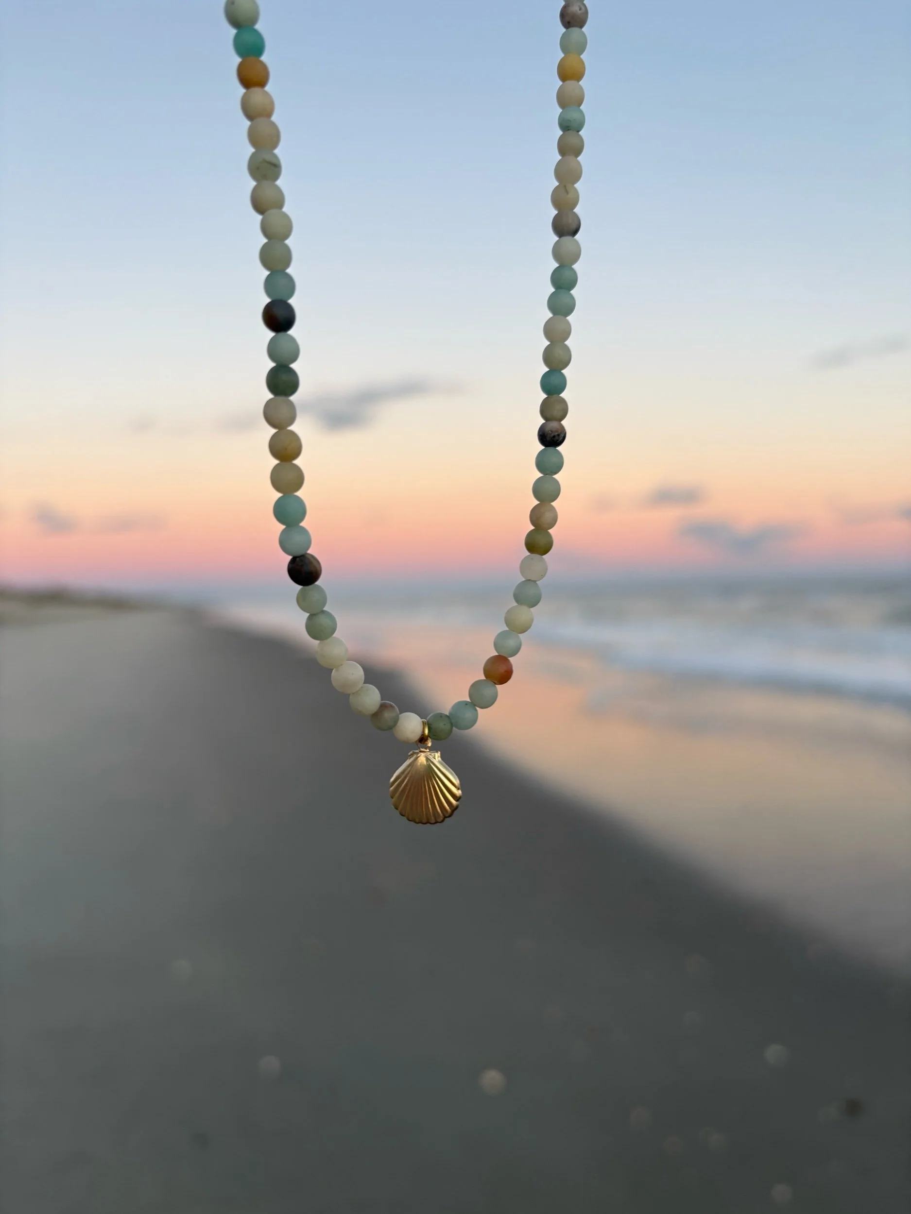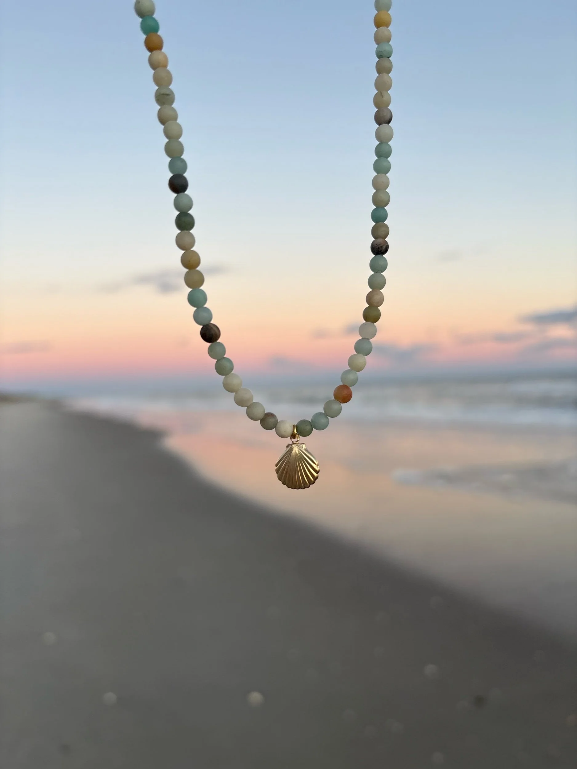 Shop › amazonite seashell necklace Image 1 of 5 Image 2 of 5 Image 3 of 5 Image 4 of 5 Image 5 of 5 amazonite seashell necklace $45.00 hand beaded 14k gold filled amazonite & seashell necklace16 inches and not adjustable Add To Cart Added! hand beaded 14k gold filled amazonite & seashell necklace16 inches and not adjustable