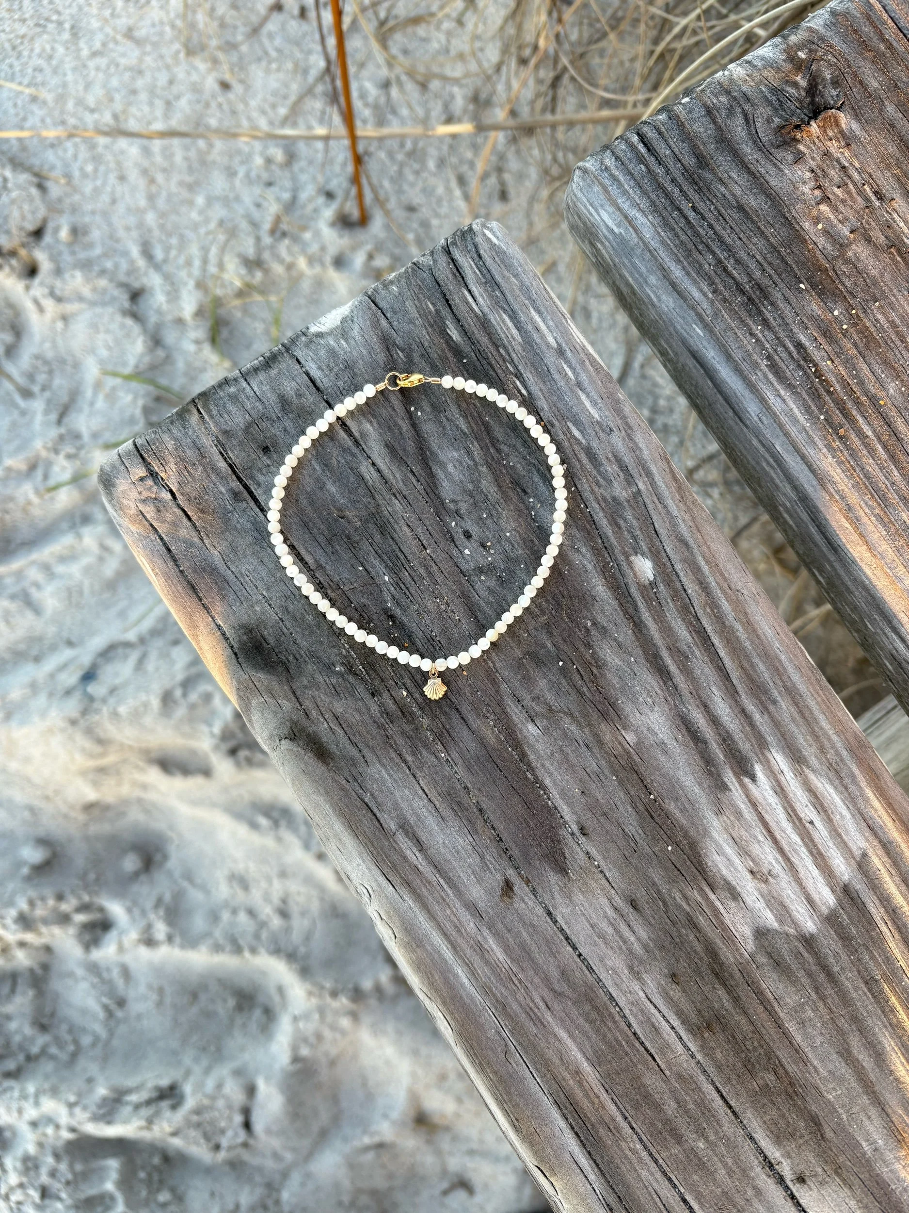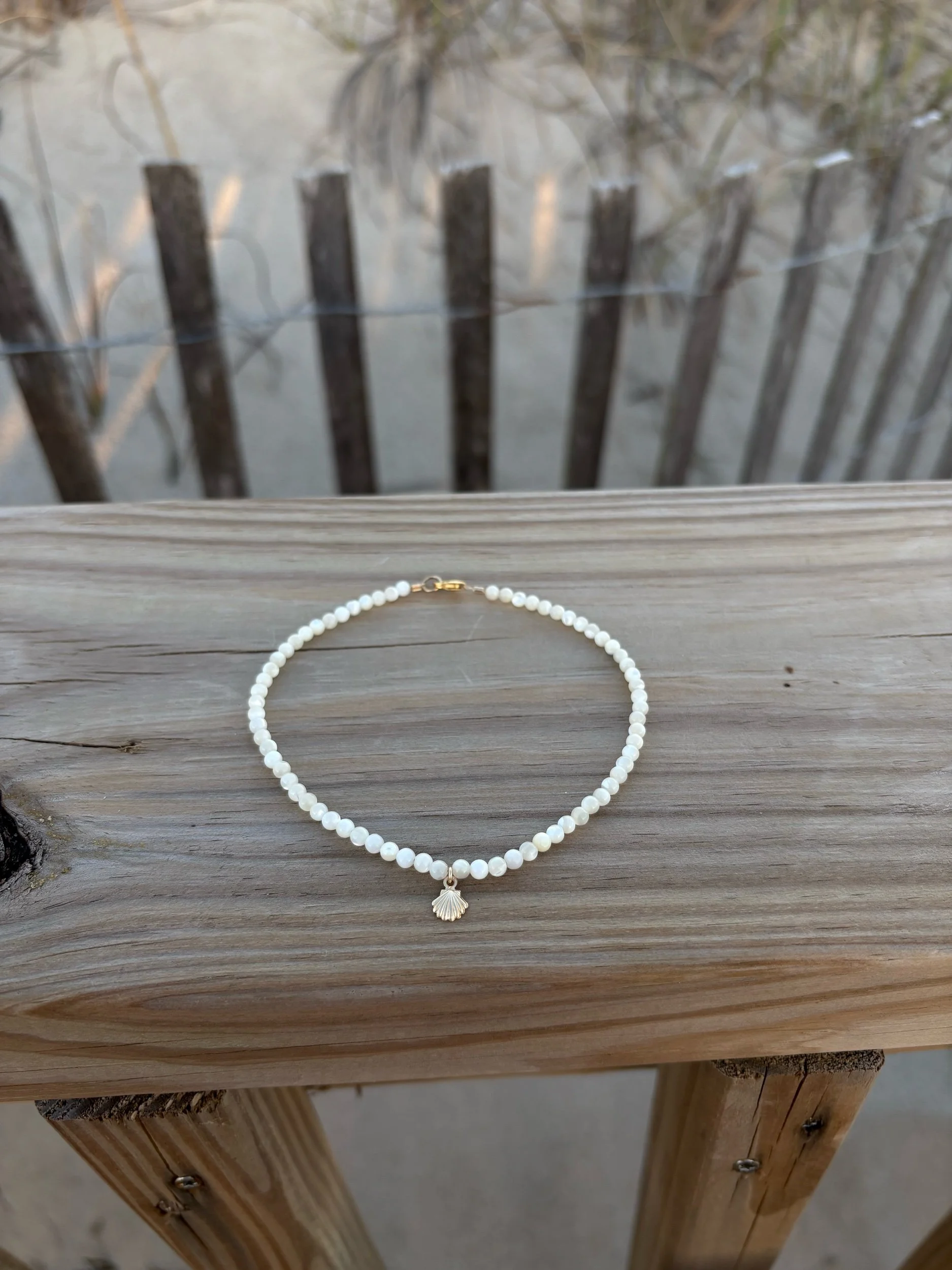 Shop › mother of pearl seashell anklet Image 1 of 2 Image 2 of 2 mother of pearl seashell anklet $30.00 14k gold filled mother of pearl seashell ankletchoose your perfect fitstandard length is 9.5 inches length: 8 in. 8.5 in. 9 in. 9.5 in. 10 in. 10.5 in. 11 in. Add To Cart Added! 14k gold filled mother of pearl seashell ankletchoose your perfect fitstandard length is 9.5 inches
