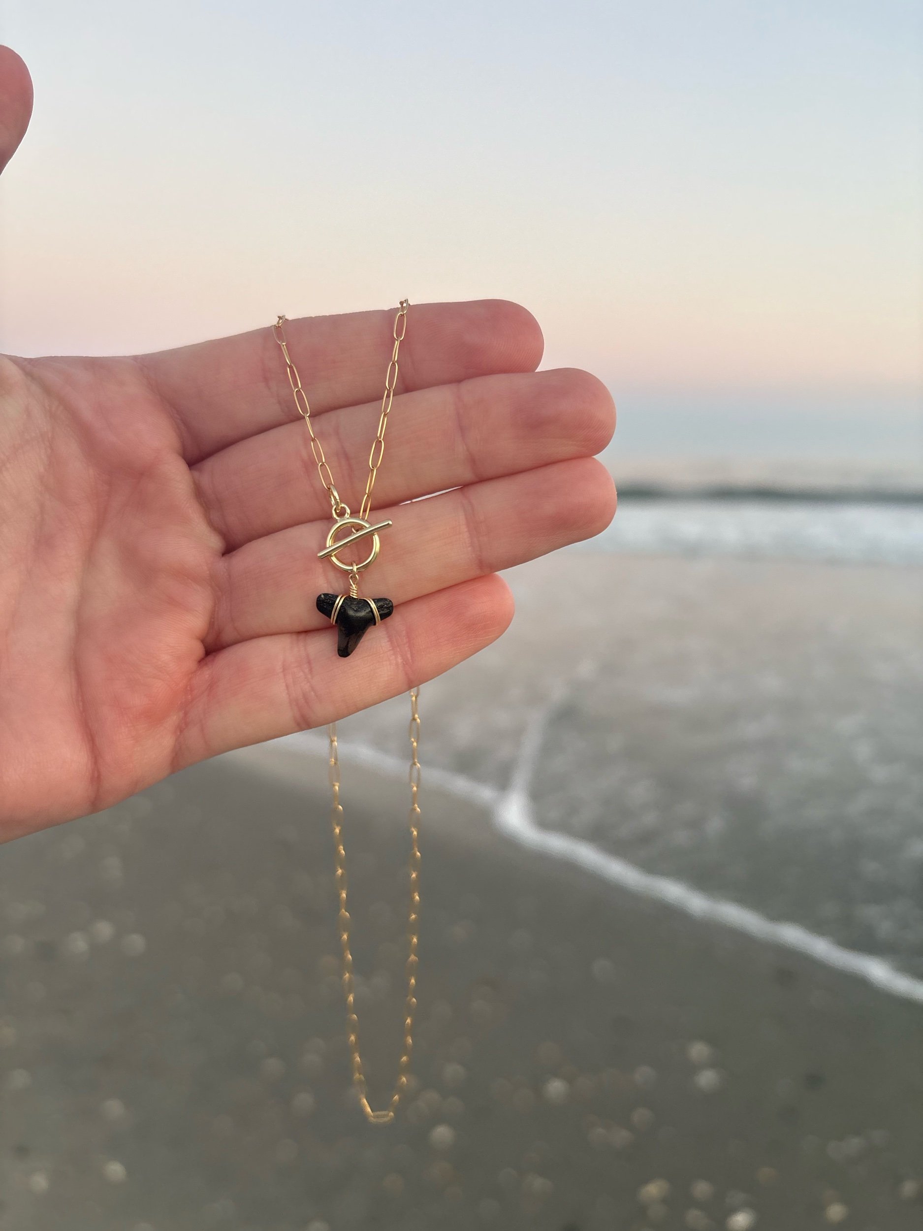 real shark tooth found on the coast of N.C. & hand wrapped with gold filled wire